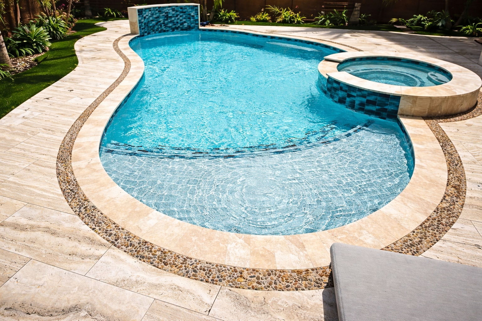 Cleaning and monitoring of tile lines, coping, and pool finishes to maintain appearance and protect structural surfaces from buildup and deterioration.
